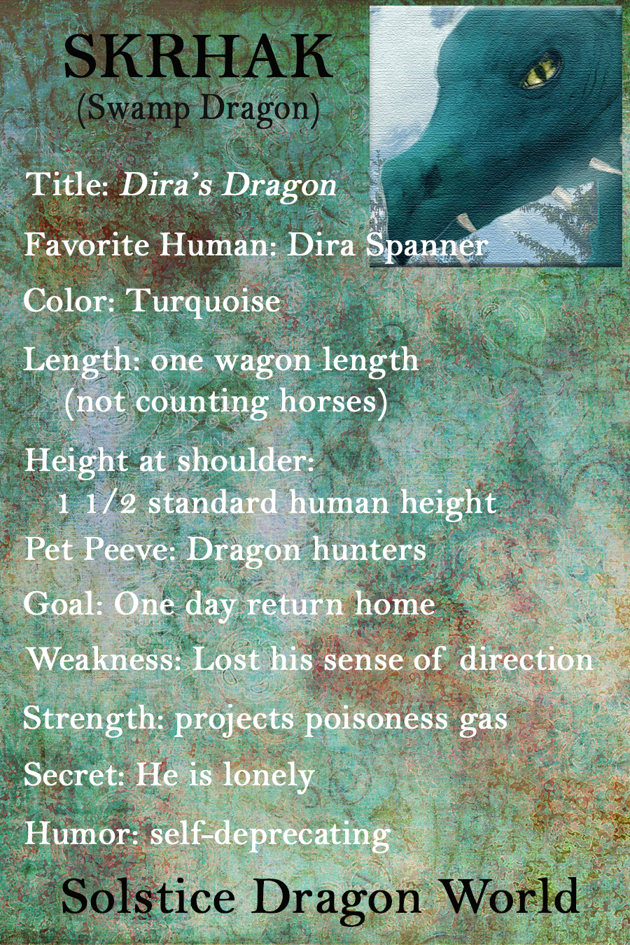 Dira: a runaway who escaped the apprenticeship her uncle negotiated for her after her mother died. Surviving outside the city was tougher than she expected and landed her at the feet of dragons.