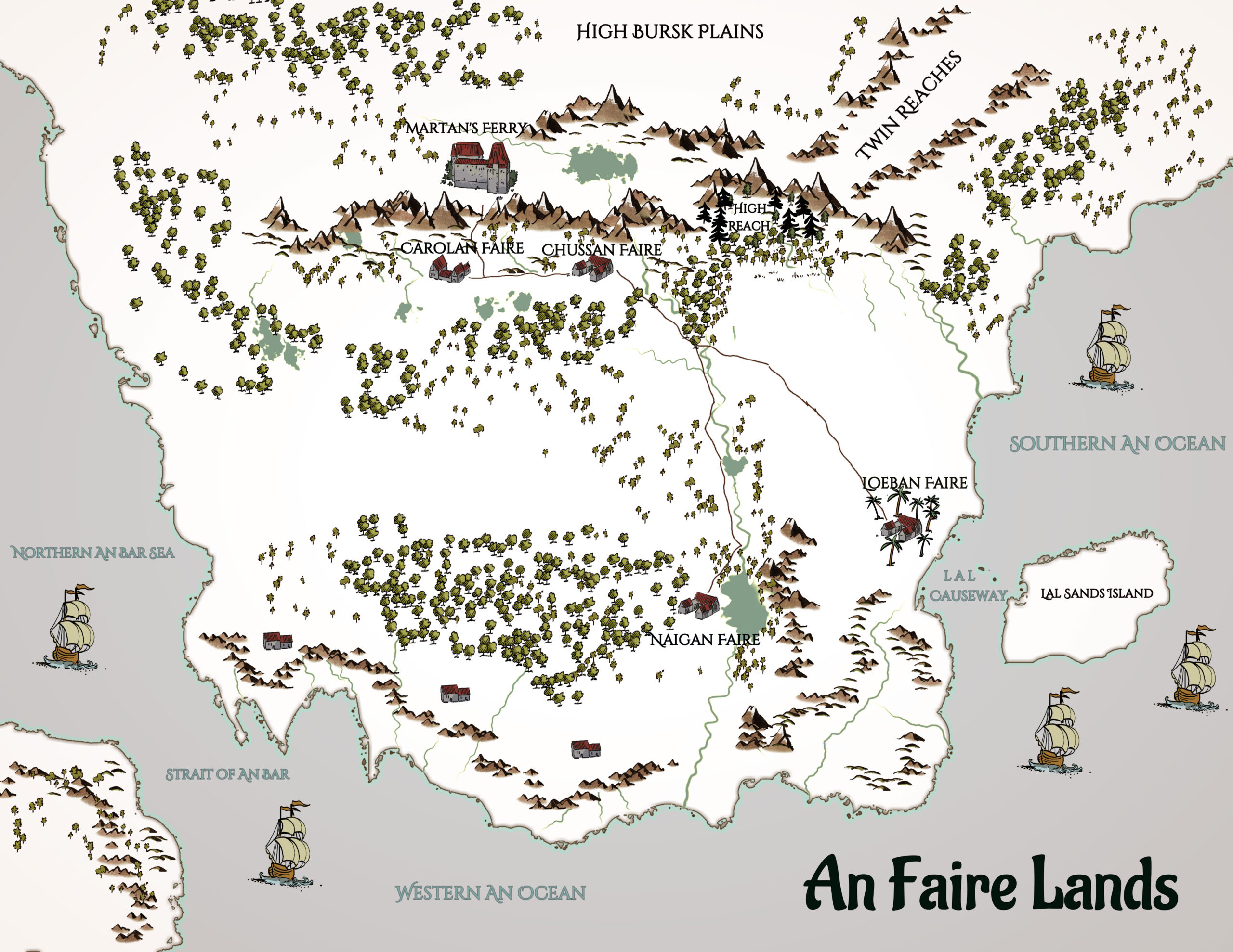 Within the cities of An Faire along the An Mountain range, wielders practice magic, most often using a tile of stone large enough for a person to stand on it. The stone provides the essence necessary to support spells, which can be used for a variety of practical needs.